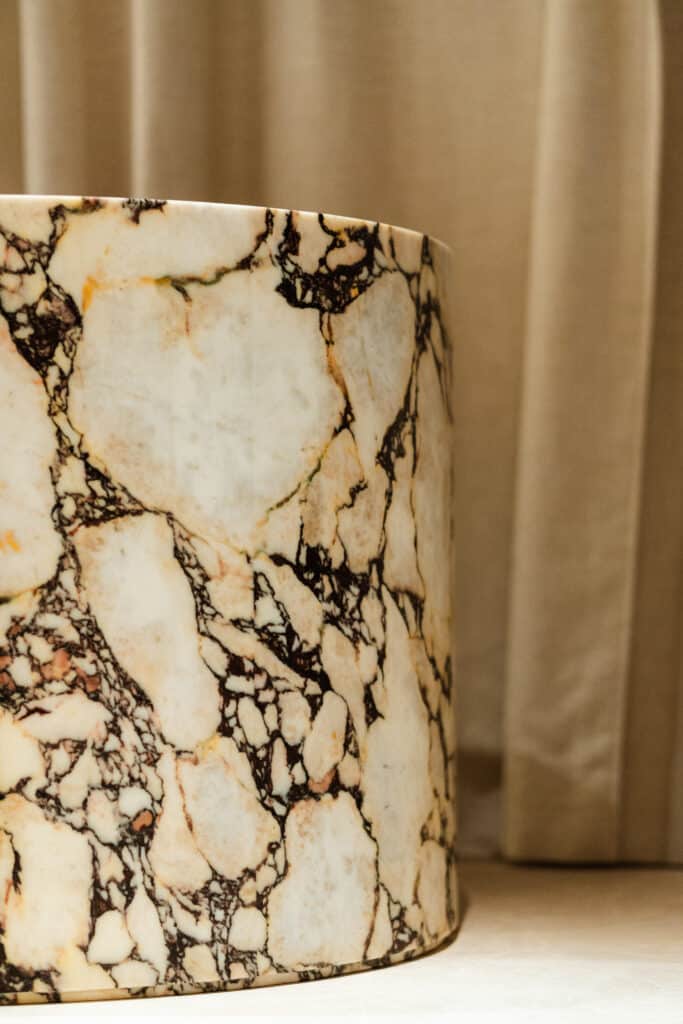 Rue d’Amsterdam, dans le 9ème arrondissement, Ateliers Uni-Marbres a revêtu de marbre les sols et les salles de bains de cette maison de 300 m² , entièrement rénovée par Balas en TCE.