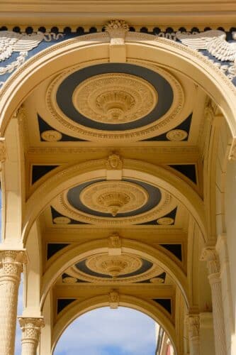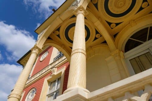 Nous mettons un point d’honneur à protéger les peintures remarquables, actuellement en état de détérioration. Le péristyle quant à lui, fera l’objet d’une restauration minutieuse dans notre atelier.