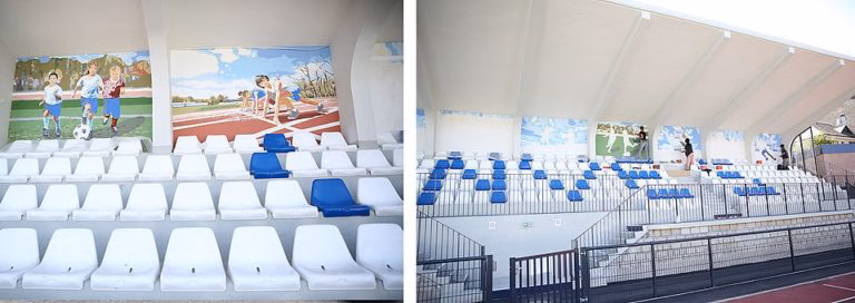 - La mise en œuvre d’une résine teintée sur la tribune existante.